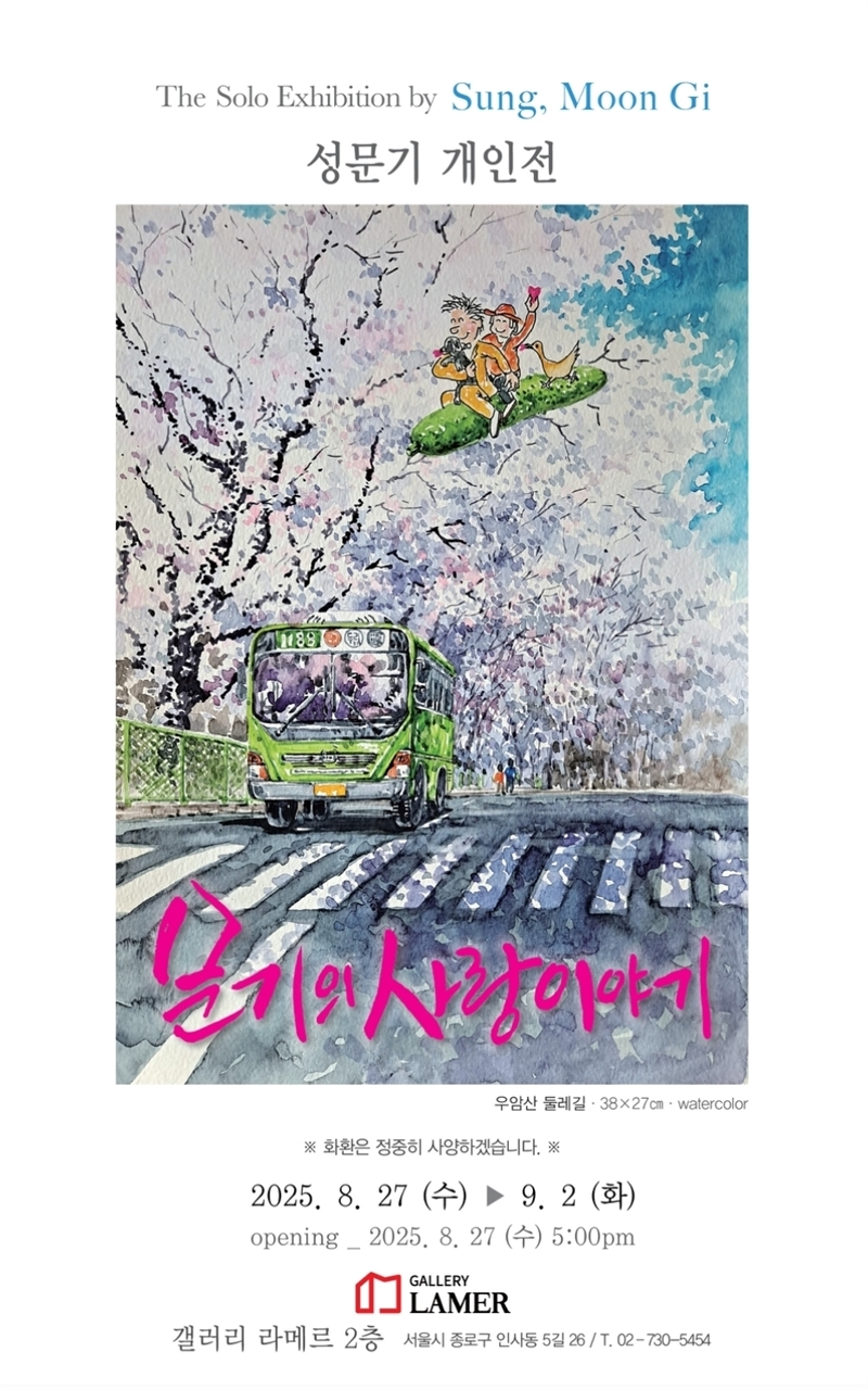 청주대학교 예술대학 만화애니메이션학과 교수이자 한국만화영상진흥원 이사로 활동 중인 성문기 작가가 제15회 개인전을 개최한다. 이번 전시는 ‘문기의 사랑이야기’를 주제로, 현대인의 일상과 감성을 풍속화적 시선으로 풀어낸 다이어리 카툰 작품 80여 점을 선보인다. 이번 전시에는 한국만화영상진흥원의 ‘2024년 다양성만화 제작